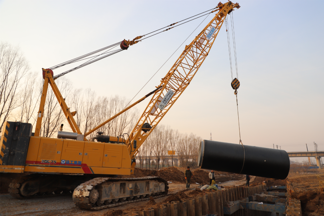 “冬季施工虽然艰苦,却是原水管线施工的关键期。我们抢抓冬季施工有利时机,加班加点,铆足干劲,即便天气降雪、气温‘跳水’也未曾停下。”现场负责人介绍,由于施工区域地下水位较高,地表土壤也呈现水饱和特点,温暖天气地下水容易渗出不利于施工。冬季气温降低施工,更有利于开挖、运输和安装。走进项目现场,一根根钢桩并排绵延。已经开挖好的沟槽旁,大型吊装机直立,在钢缆牵引下,正在吊运粗大的空心管道;几名管道工人在一旁监护,双方相互配合下,管道平稳落进沟槽中央。潇河产业园区原水管线工程是潇河产业园区重要的要素保障工程,由汾飞集团综改水务公司投资建设。原水管线全长12.28公里,建成后每年可为潇河产业园区提供黄河原水6205万吨。工程自去年9月份入场以来,为了保证工期,项目部采取多点作业、分段施工的方式,合理调配工序,最大限度高效施工,目前管线建设已经完成9公里。